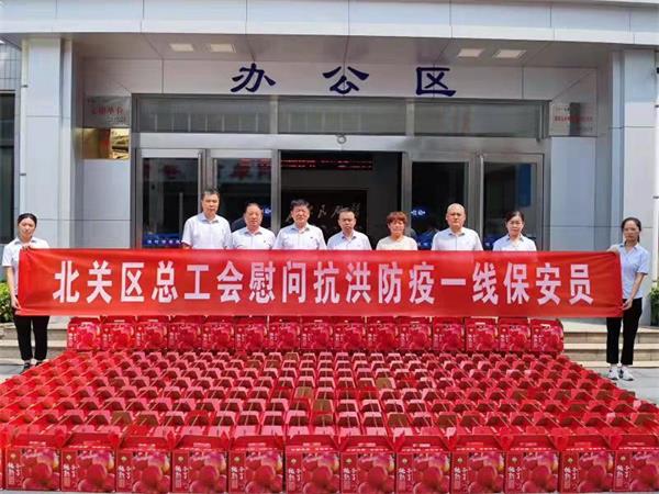 8月9日、10日北關(guān)區(qū)總工會(huì)副主席薛梅、保障部部長(zhǎng)司尚雯來(lái)到公司,送來(lái)抗洪防疫慰問(wèn)品鮮桃500多箱,向堅(jiān)守崗位、奮戰(zhàn)一線(xiàn)的保安隊(duì)員進(jìn)行慰問(wèn),提醒大家做好防控工作的同時(shí)一定要做好自身防護(hù)。