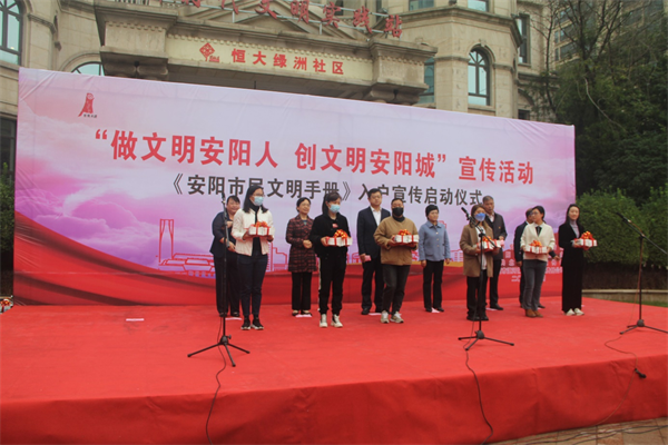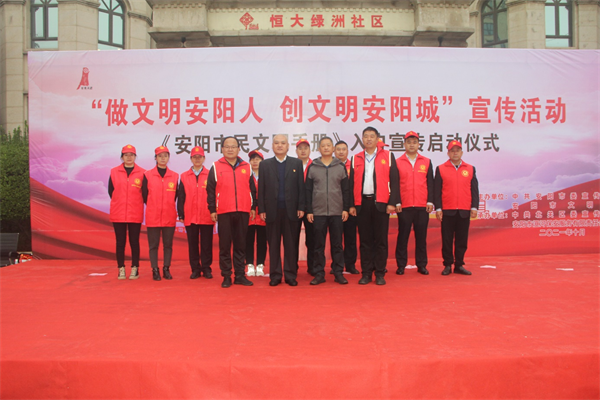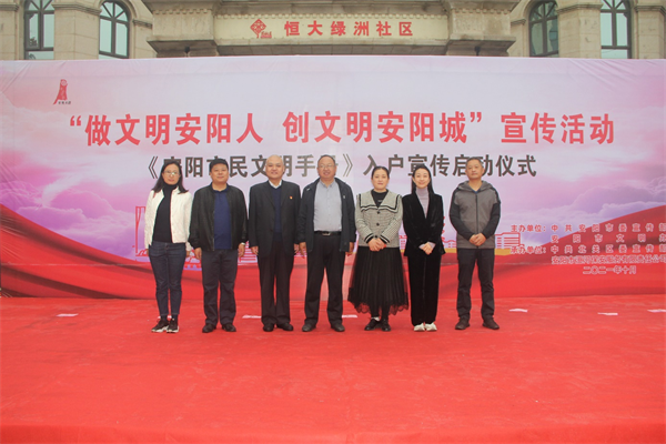 10月9日上午,由公司承辦的,安陽“做文明安陽人 創(chuàng)文明安陽城”宣傳活動(dòng)暨《安陽市民文明手冊》入戶宣傳啟動(dòng)儀式,在恒大綠洲新時(shí)代文明實(shí)踐站舉行。市委常委、宣傳部部長、副市長薛崇林,市人大常委會(huì)副主任張玲,市政協(xié)副主席李志弘,市委宣傳部副部長、市文明辦主任車俊朝,北關(guān)區(qū)委副書記、區(qū)長路錄平,北關(guān)區(qū)委常委、宣傳部長、副區(qū)長王洪忠,各級(jí)文明單位代表、社區(qū)代表、北關(guān)區(qū)志愿者代表,群眾代表參加儀式,儀式由車俊朝主持。公司黨委委員、副總經(jīng)理魏東帶領(lǐng)28名志愿者參加此次活動(dòng)。