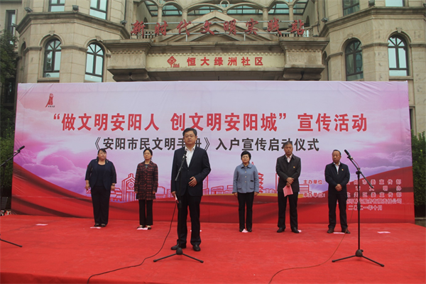市委常委、宣傳部部長、副市長薛崇林同志做了重要講話,對(duì)如何發(fā)放好、利用好《安陽市民文明手冊》提出了指導(dǎo)性的意見建議,就我市下一步創(chuàng)建文明城市工作提出了具體要求,各級(jí)各部門要迅速投入《手冊》的發(fā)放和入戶宣傳工作中去,機(jī)關(guān)干部要帶頭和推動(dòng)全社會(huì)參與文明創(chuàng)建工作,通過廣泛宣傳發(fā)動(dòng),提高市民對(duì)創(chuàng)建文明城市工作的知曉率、支持率、參與率。