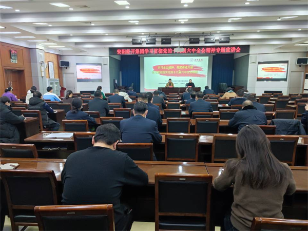 12月14日上午,安陽經(jīng)開集團(tuán)召開學(xué)習(xí)貫徹黨的十九屆六中全會(huì)精神專題宣講會(huì),深入學(xué)習(xí)貫徹習(xí)近平總書記在黨的十九屆六中全會(huì)上的重要講話精神和《中共中央關(guān)于黨的百年奮斗重大成就和歷史經(jīng)驗(yàn)的決議》,特邀請(qǐng)中共安陽市委黨史學(xué)習(xí)教育宣講團(tuán)成員、安陽學(xué)院黨委委員、宣傳部部長(zhǎng)姚林茹進(jìn)行授課,會(huì)議由經(jīng)開集團(tuán)黨委委員、副總經(jīng)理劉志霞主持。洹河保安公司黨委副書記張錫***帶隊(duì),組織公司15名黨員干部參加學(xué)習(xí)。