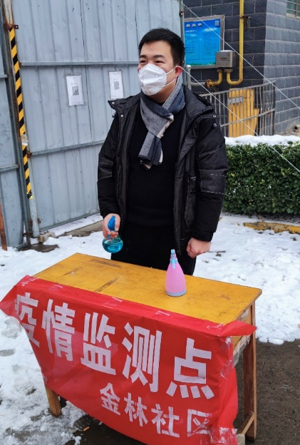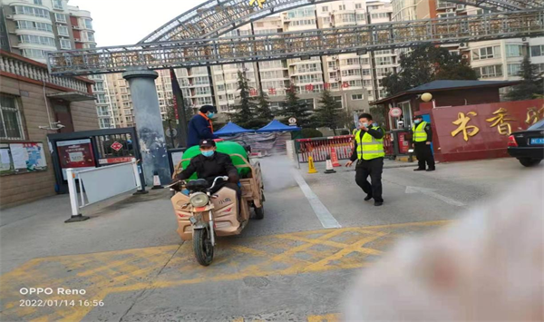 1月8日,金鼎園項(xiàng)目部接到上級(jí)防疫指令后,立即成立了以項(xiàng)目負(fù)責(zé)人杜春輝為組長(zhǎng)的疫情防控應(yīng)急小組。杜春輝每天協(xié)助社區(qū)開(kāi)展核酸檢測(cè),接送醫(yī)護(hù)人員,幫助社區(qū)運(yùn)送醫(yī)用垃圾,保障小區(qū)業(yè)主正常生活。