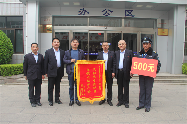 今年,在抗擊新冠病毒肺炎疫情的戰(zhàn)斗中,為了維護(hù)校園安全,人防三大隊(duì)隊(duì)員范保生恪盡職守,付出了極大的辛苦和努力,為學(xué)校疫情防控和安全保衛(wèi)工作做出了重要貢獻(xiàn)。為了鼓勵(lì)******,樹(shù)立表率,3月30日下午,市第二高級(jí)中學(xué)校長(zhǎng)康錦光,將印有“盡職盡責(zé)顯擔(dān)當(dāng)忠誠(chéng)履職保平安”的錦旗送到了公司并獎(jiǎng)勵(lì)范保生獎(jiǎng)金500元。