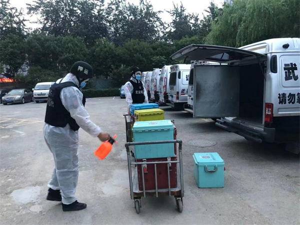 9月8日,大隊(duì)接銀行通知,因醫(yī)院提供現(xiàn)金支持需從人行取款。防疫備勤車組立即全副武裝,投入緊張的押運(yùn)工作中。時(shí)值中秋前夕,白天氣溫仍徘徊在三十度左右。每天近八個(gè)小時(shí)的押運(yùn)任務(wù),讓穿著密不透氣的連體防護(hù)服的隊(duì)員們衣服被汗水浸透,皮膚被泡的發(fā)白,脫去防護(hù)服時(shí)就像洗了澡一樣。但同志們沒有喊一聲苦、叫一聲累,安全順利地完成押運(yùn)任務(wù),以實(shí)際行動(dòng)體現(xiàn)了守押隊(duì)員在防疫、抗疫中不平凡的堅(jiān)守,得到了客戶的高度贊揚(yáng)。