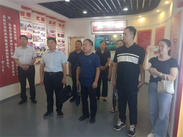 依據(jù)《安陽市勞動模范(工匠人才)創(chuàng)新工作室管理辦法》(安工文〔2021〕6號)和《關(guān)于申報2023年安陽市勞模(工匠人才)創(chuàng)新工作室的通知》通知要求,8月22日上午,市總工會勞模創(chuàng)新工作室聯(lián)盟考核組******勞模呂勝戰(zhàn)、滑縣總工會勞動和經(jīng)濟工作部部長魏曉等和區(qū)總工會副主席趙扶宇,勞經(jīng)部長曹瑞麗一行7人到公司就勞模工作室建設(shè)狀況進(jìn)行調(diào)研考核,公司黨委副書記、監(jiān)事長、工會主席張錫***,辦公室主任、工會副主席陸萍陪同調(diào)研。