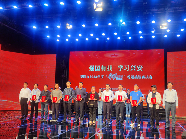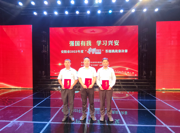 9月26日上午,由中共安陽(yáng)市委宣傳部、“學(xué)習(xí)強(qiáng)國(guó)”安陽(yáng)學(xué)習(xí)平臺(tái)聯(lián)辦的“強(qiáng)國(guó)有我?學(xué)習(xí)興安”安陽(yáng)市2023年度“學(xué)習(xí)強(qiáng)國(guó)”答題挑戰(zhàn)賽決賽在安陽(yáng)市融媒體中心隆重舉行,公司選派六名選手代表市國(guó)企黨委參賽。經(jīng)過(guò)激烈的“知識(shí)對(duì)決”,公司安大鵬、趙高飛榮獲二等獎(jiǎng),馮文峰榮獲三等獎(jiǎng),市國(guó)企黨委榮獲******組織單位。