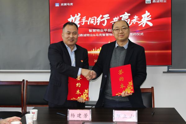 隨后,歡聚馬克創(chuàng)始人鄭立山與鼎誠(chéng)物業(yè)經(jīng)理?xiàng)罱ǚ歼M(jìn)行戰(zhàn)略合作簽約。