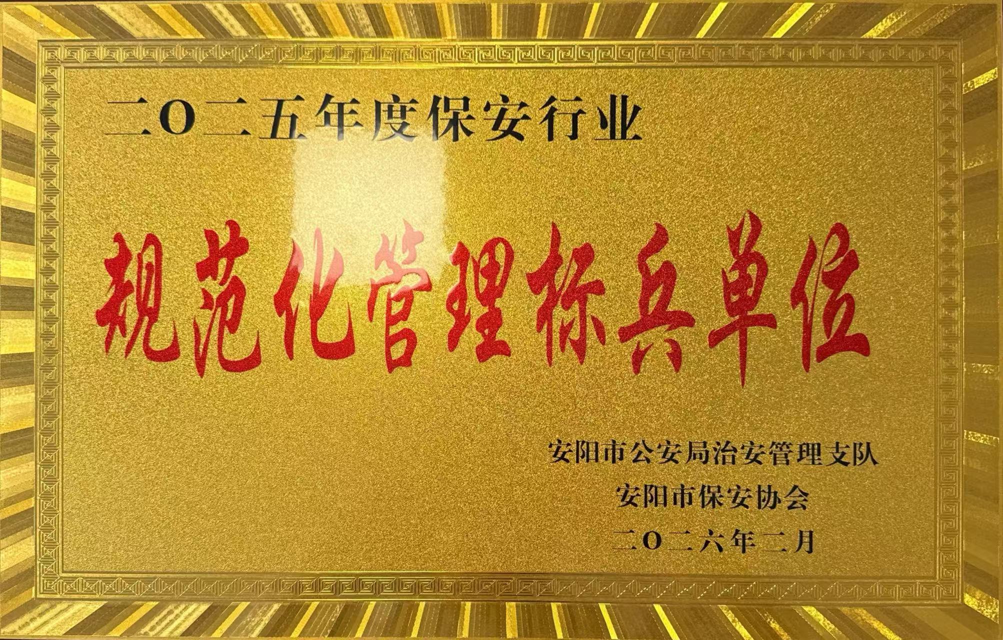 2月10日上午,安陽市保安協(xié)會(huì)2026年度工作會(huì)議隆重召開。會(huì)上,公司被授予“保安行業(yè)規(guī)范化管理標(biāo)兵單位”榮譽(yù)稱號(hào),這是行業(yè)主管部門與協(xié)會(huì)對(duì)我司規(guī)范化建設(shè)、精細(xì)化管理與高品質(zhì)安保服務(wù)的高度認(rèn)可與充分肯定。