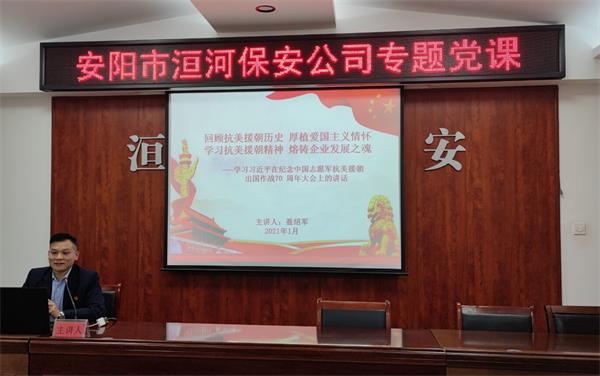 為了弘揚(yáng)偉大抗美援朝精神,銘記歷史、致敬英雄,引導(dǎo)廣大黨員干部傳承革命精神,牢記初心使命,勇于擔(dān)當(dāng)作為。由于當(dāng)前處于疫情防控期,2021年1月12日下午,在公司南二樓會(huì)議室,黨委錄制了專題黨課視頻,黨課以《回顧抗美援朝歷史 厚植愛國(guó)主義情懷 學(xué)習(xí)抗美援朝精神 熔鑄企業(yè)發(fā)展之魂》為主題,由第三黨支部書記聶紹***同志講授,要求各黨支部充分利用微信工作群、學(xué)習(xí)強(qiáng)國(guó)云盤等網(wǎng)絡(luò)平臺(tái),通過集中學(xué)習(xí)或自主學(xué)習(xí)形式動(dòng)員廣大黨員收看,并做好黨課筆記。