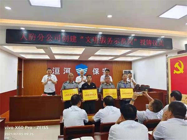 7月5日上午,人防分公司在公司五樓會(huì)議室舉行“文明服務(wù)示范崗”授牌儀式。公司黨委委員、副總經(jīng)理魏東出席會(huì)議并講話,公司總經(jīng)理助理、人防分公司經(jīng)理李向陽主持會(huì)議,人防保安班中隊(duì)長(zhǎng)、人防中層以上干部80余人參加會(huì)議。