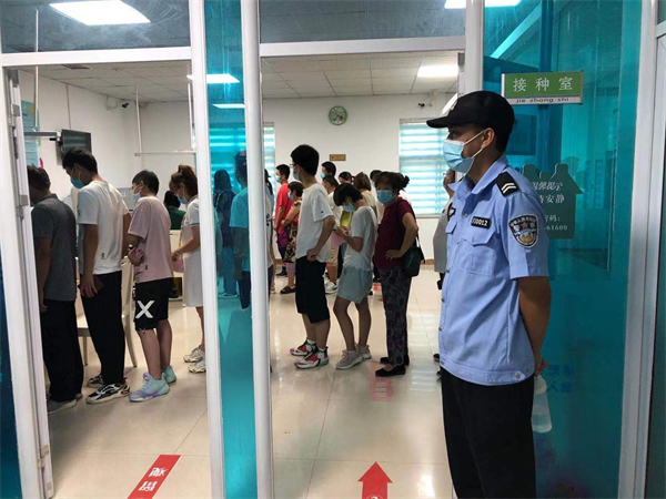 特保巡防隊(duì)員緊密配合相關(guān)部門,現(xiàn)場(chǎng)維護(hù)秩序。接種現(xiàn)場(chǎng)分別設(shè)置等候區(qū)、登記室、接種室、留觀區(qū)、隔離室和處置室等區(qū)域。為防止疫苗接種現(xiàn)場(chǎng)人員集中涌入,造成人員聚集,執(zhí)勤隊(duì)員全程做好現(xiàn)場(chǎng)秩序維持、人員分流、指導(dǎo)疫苗接種群眾佩戴好口罩、有序排隊(duì)、填寫疫苗接種登記信息、入場(chǎng),并及時(shí)勸導(dǎo)接種后人員有序撤離現(xiàn)場(chǎng),接種現(xiàn)場(chǎng)整個(gè)過(guò)程有條不紊。