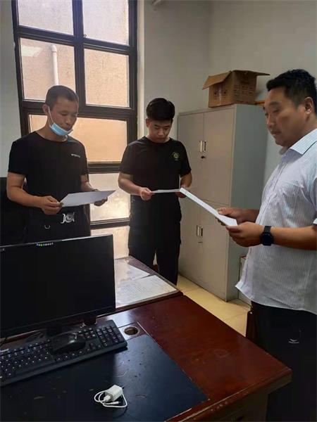 圖為副大隊(duì)長李衛(wèi)國對萬隆物業(yè)、石油公司崗點(diǎn)班長以上人員進(jìn)行排查報(bào)告清單的填寫,收集存在問題。