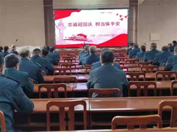 中隊長劉宇傳達了大隊會議精神,布置了當前中隊的工作。副中隊長楊承濤對校園保安進行了安全警示教育。