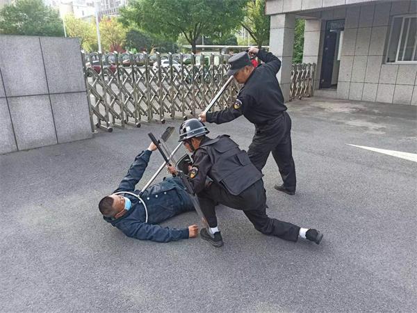 為做好這次防恐預(yù)案演練,人防一大隊領(lǐng)導(dǎo)和郵局保安班隊員一起,對預(yù)案方案進行了細化,從場景設(shè)置到人員安排,從道具準(zhǔn)備到過程節(jié)點把握都做了詳細安排和部署。4月13號上午8點,郵局保安班一場外來人員到郵局機關(guān)大院鬧事防恐演練開始,保安員正在值班中間,從外面進來兩名陌生人員想進入大院,其中一名保安隊員上前詢問兩名陌生人員辦什么事,兩名陌生人員突然從身上掏出兇器,就要強行闖卡。保安見情況不妙,馬上用對講機呼喊隊員帶防爆器材過來,這期間,這兩名陌生人員拿著兇器在門口鬧事,保安隊員又及時打電話通知保衛(wèi)科,讓各科室把門鎖好以防進入樓層。兩名保安帶著防爆叉以及盾牌阻止陌生人員違法行為,經(jīng)過一番搏斗,終于制服了兩名陌生人員,然后向公安機構(gòu)報警。