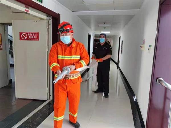 在演練現(xiàn)場,隨著客戶單位保衛(wèi)科領(lǐng)導一聲令下,消防主機響起了刺耳的火警報警,演練隊員賀永豪立即提著滅火器材,帶領(lǐng)當班隊員迅速跑到起火樓層,并用對講機通知消防室人員按滅火預案進行滅火,用應(yīng)急廣播通知客戶單位職工按順序逃離現(xiàn)場,撤到安全地帶。隨后隊員們又進行了消防知識培訓,確保了消防安全演練效果。