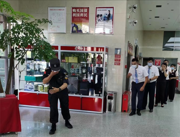 為進(jìn)一步強(qiáng)化“國慶”、“二十大”期間金融部門銀行業(yè)對外營業(yè)安全及應(yīng)對突發(fā)事件能力,10月3日下午,招商銀行聯(lián)合特保大隊(duì)駐招商銀行特保班進(jìn)行了消防應(yīng)急預(yù)案演練,特保班長王瑜負(fù)責(zé)組織指揮,特保隊(duì)員分工明確行動(dòng)迅速、妥善處理險(xiǎn)情,受到銀行保衛(wèi)部經(jīng)理王瀟曉的好評。
