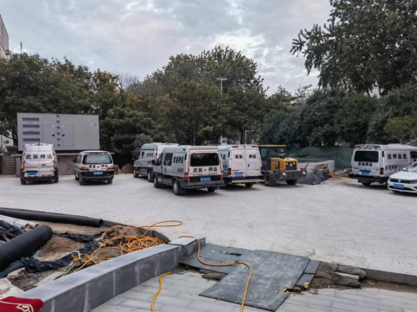 自入秋以來,中國銀行院內(nèi)改造工程進入地面破拆硬化階段。隨著工程進行,院內(nèi)地面泥濘不堪,我大隊款車只能在院外等候,押運人員接送款箱采取徒步押運方式往返金庫,疊加院內(nèi)施工車輛眾多,施工人員復(fù)雜等情況,為我大隊的日常勤務(wù)工作帶來極大風(fēng)險。