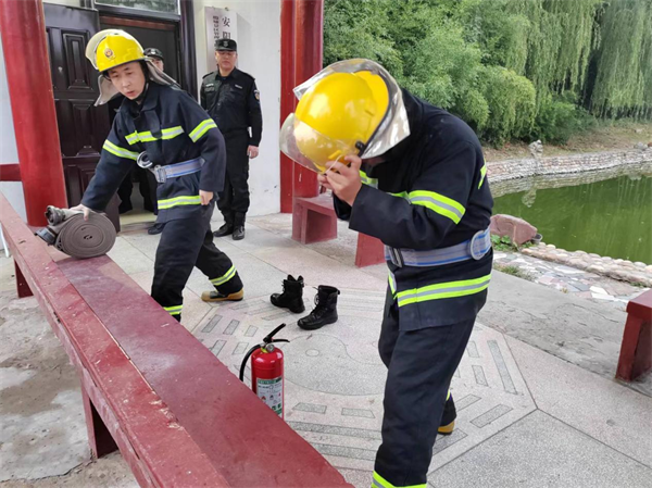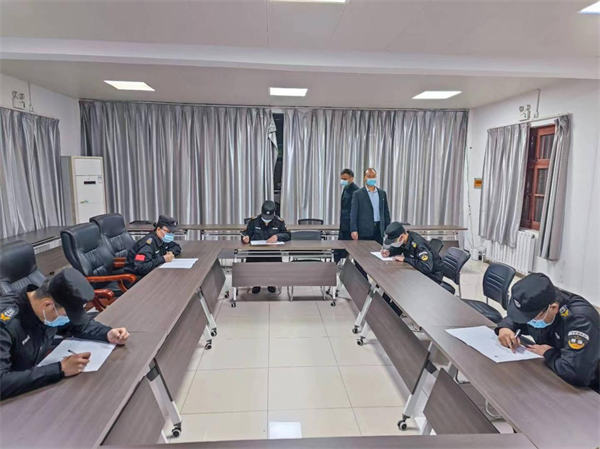 此次“大練兵”活動主要采取戶外集中演練和消防演習(xí)相結(jié)合的方式進(jìn)行展示,其中演練項目包括隊列展示、擒敵拳、甩棍操等,他們動作規(guī)范、排面整齊、英姿颯爽??己私M按照文件要求按照比例對隊員進(jìn)行筆試。