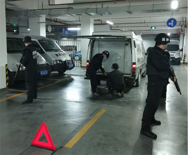 演練現(xiàn)場,一輛運鈔車在執(zhí)行押運勤務(wù)途中突發(fā)故障,車組人員沉著冷靜、反應(yīng)迅速、措施得當(dāng),整個過程按照應(yīng)急預(yù)案有序進(jìn)行,達(dá)到預(yù)期效果。