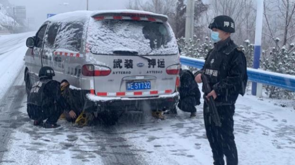 早上點(diǎn)名前,大隊(duì)長楊中朝就通過大隊(duì)微信工作群向各行中隊(duì)傳達(dá)了指示。一是要根據(jù)路況,精準(zhǔn)研判,行車中減速慢行,不超車,車上備足兩套防滑鏈,對于上下坡路段積雪嚴(yán)重的要及時(shí)進(jìn)行安裝防滑鏈,確認(rèn)安全后再行駛。二是針對銀行網(wǎng)點(diǎn)的路況要及時(shí)和銀行網(wǎng)點(diǎn)進(jìn)行溝通,車輛行駛不到的要及時(shí)進(jìn)行上報(bào),通過與銀行網(wǎng)點(diǎn)聯(lián)系,做到延遲送達(dá)或者暫不運(yùn)送,謹(jǐn)記安全******。三是要根據(jù)上午運(yùn)送的線路路況,對下午的出車接款時(shí)間做出調(diào)整,通過與銀行網(wǎng)點(diǎn)的溝通聯(lián)系,適時(shí)提前下午出車的接款時(shí)間,力爭在晚上溫度下降前安全返回。