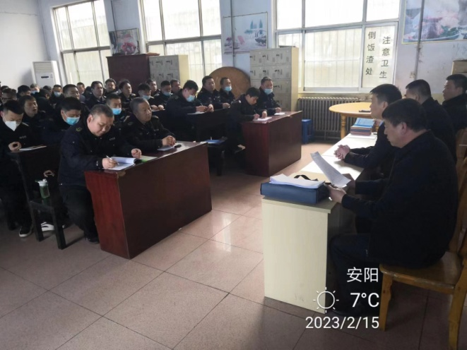 2月15日,公司黨委委員、副總經(jīng)理李樞林,守押分公司副經(jīng)理王洪亮、韋洪東一行到守押七大隊(duì)對(duì)中層干部進(jìn)行2022年度民主測評(píng)。守押七大隊(duì)全體隊(duì)員參加測評(píng)會(huì)。