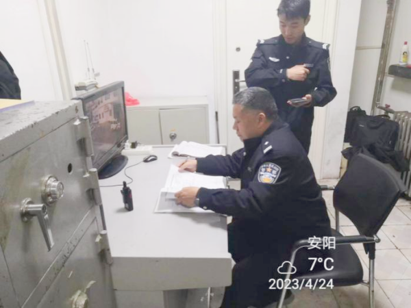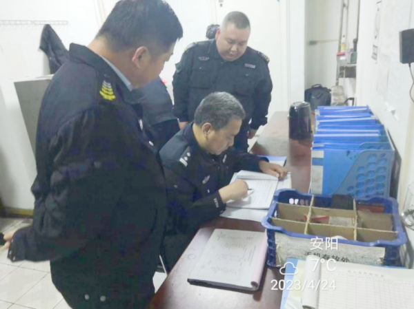 4月24日上午,林州市公安局治安大隊(duì)民警郝白山、劉紀(jì)林分別到七大隊(duì)聯(lián)社中隊(duì)和建行中隊(duì)檢查工作,大隊(duì)領(lǐng)導(dǎo)陪同檢查。