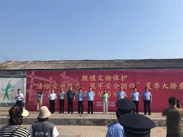 儀式上,安陽市公安局文保支隊長張書平對本次排查進行了部署,殷墟管委會楊麗英主任就做好專項排查做了重要講話。