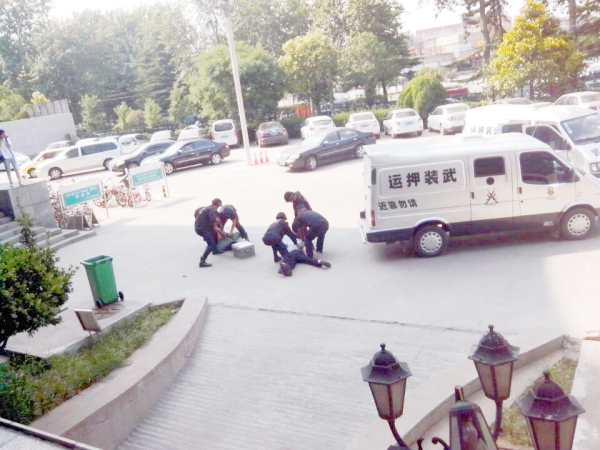 為進一步增強守押隊員的安全防范意識,著力提升守押隊伍突發(fā)事件的應(yīng)急處置能力,有效防范和應(yīng)對銀行押運車輛、金庫、營業(yè)網(wǎng)點各類暴力恐怖突發(fā)事件,守押二大隊于9月22日在農(nóng)業(yè)銀行安陽市行院內(nèi)組織開展了一次暴恐突發(fā)事件應(yīng)急演練。