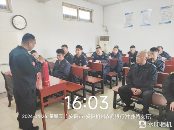 為確保五一節(jié)期間押運工作安全,4月26日,守押十二大隊相州農(nóng)商銀行中隊進行消防安全知識培訓。