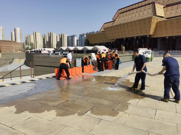 活動(dòng)中,隨著預(yù)警信號(hào)響起,由特保隊(duì)員組成的防汛應(yīng)急小組聞令而動(dòng),迅速集結(jié),按照預(yù)案分組開展“防汛”救災(zāi)工作。“搶險(xiǎn)作戰(zhàn)組”立即調(diào)取抽水泵架設(shè)到位、及時(shí)排澇,防汛沙袋逐一封堵庫(kù)房等重點(diǎn)部位;“安全疏散小組衛(wèi)組”有序組織游客和職工疏散。各組分工明確、配合得力,演練現(xiàn)場(chǎng)緊張有序、過程持續(xù)半個(gè)多小時(shí),達(dá)到了預(yù)期目標(biāo)。