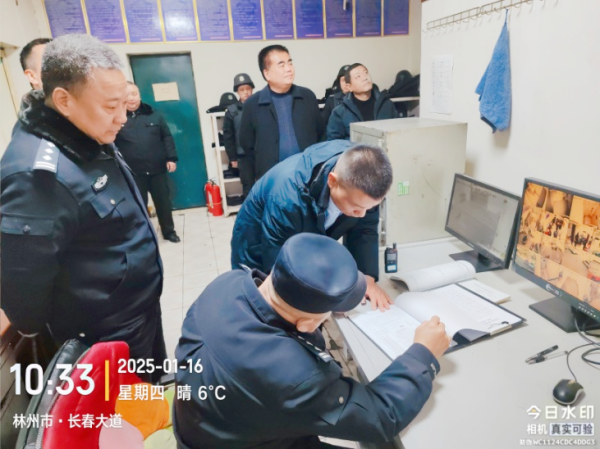 1月16日上午,安陽(yáng)市公安局治安支隊(duì)民警郭慶林一行在守押分公司副經(jīng)理韋洪東陪同下,到守押七大隊(duì)檢查工作,大隊(duì)長(zhǎng)楊中朝全程陪同。