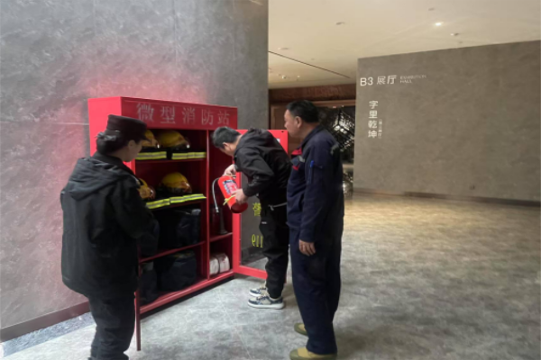 檢查期間,中隊長李杰帶領特保隊員聯(lián)合物業(yè)人員組成檢查小組,對徽文館、博文館微型消防站內(nèi)消防設施、消防聯(lián)動報警器、手動報警器等設備進行逐一檢查。測試了消火栓水槍壓力,對消防通道、安全******、疏散通道是否暢通,應急照明燈、疏散指示表是否配置齊全并保持完好有效,滅火器是否定期器材維護保養(yǎng)等情況進行排查。