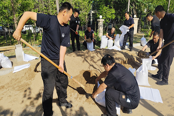 在班長(zhǎng)李治國(guó)的帶領(lǐng)下,隊(duì)員們迅速進(jìn)入工作狀態(tài),現(xiàn)場(chǎng)分工清晰明確。大家各司其職,有的專注于裝填沙袋,有的仔細(xì)為沙袋扎口,還有的負(fù)責(zé)搬運(yùn)沙袋,整個(gè)防汛物資準(zhǔn)備工作忙碌而有序。盡管是休息時(shí)間,但隊(duì)員們始終保持著高度的責(zé)任心,以實(shí)際行動(dòng)踐行防汛使命。