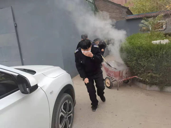 圖為消防演練現(xiàn)場。
