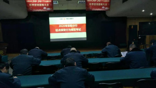 會后,派駐工行營業(yè)廳網(wǎng)點(diǎn)保安員進(jìn)行了《工行網(wǎng)點(diǎn)執(zhí)勤保安隊(duì)員行為規(guī)范操作》開卷考試。大家表示,要用實(shí)際行動盡職盡責(zé)干好本職工作,為工行的安全貢獻(xiàn)自己的力量。