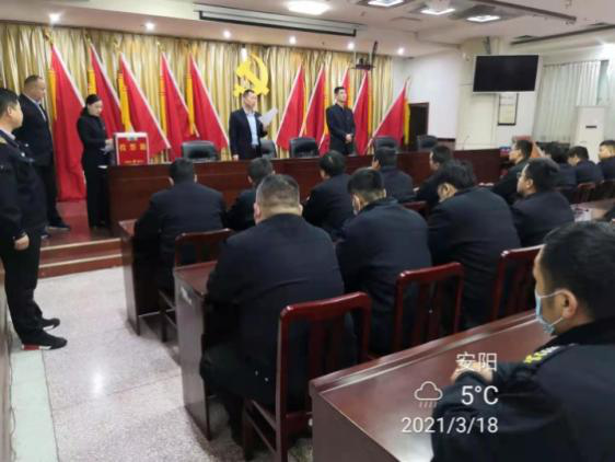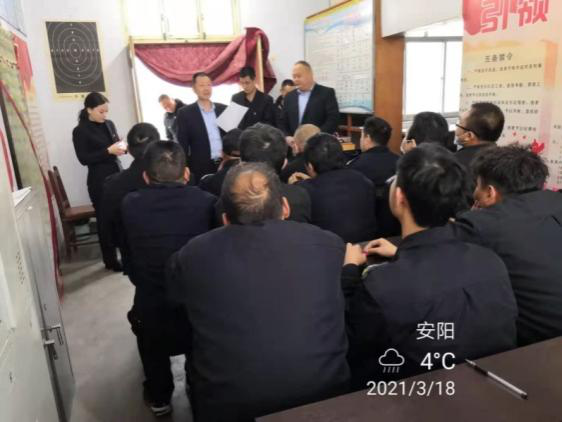 3月18日上午,公司考核組庫(kù)擁***、翟新杰、楊曉一行蒞臨守押七大隊(duì),開(kāi)展2020度中層干部考評(píng)工作。