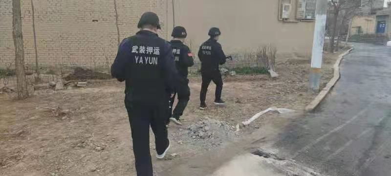 圖為在徒步執(zhí)行押運(yùn)任務(wù)。