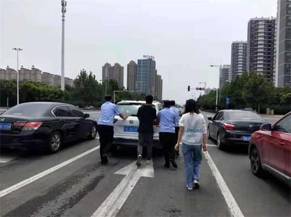 2021年7月2號(hào)上午11點(diǎn)50左右,人防一大隊(duì)高新區(qū)巡防隊(duì)楊銀書巡邏至黃河南路與中華路口,看見(jiàn)快車道上停著一輛外地車牌的白色汽車,開著雙閃警示燈,車后也未放安全警示牌。一名女同志站在路中間左右觀望非常焦急的樣子。疾駛的車輛從身邊穿過(guò)非常危險(xiǎn)。