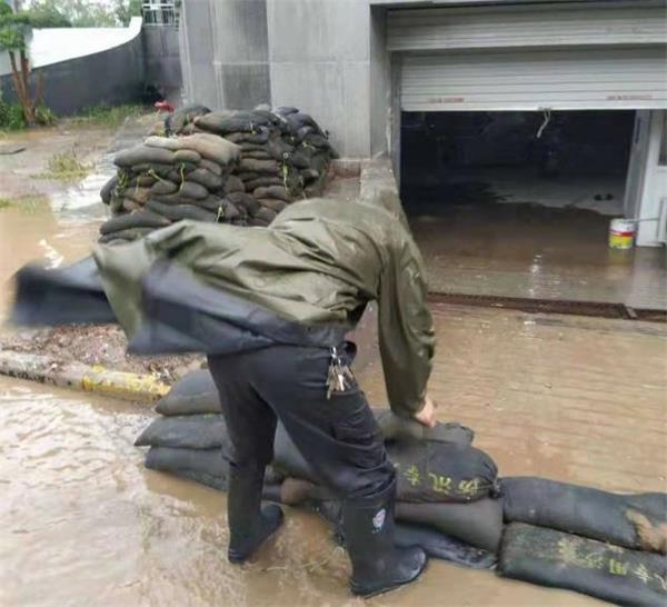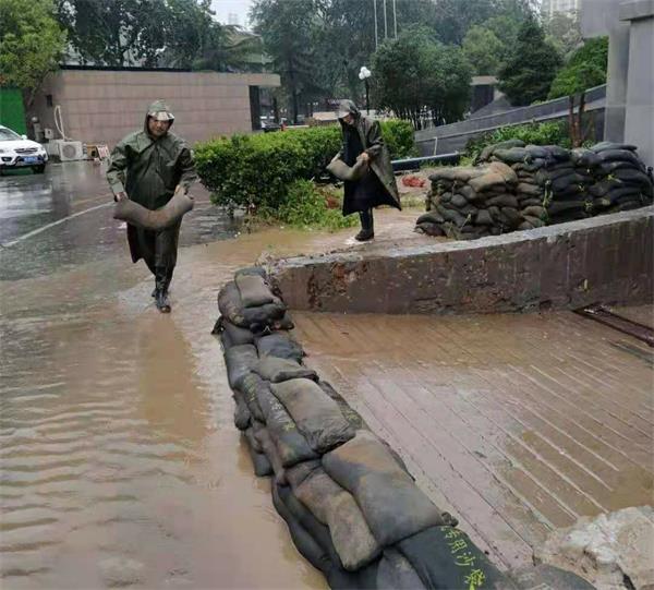 保安隊(duì)員冒著暴雨四處巡查客戶單位各排水口,疏通堵塞的下水道,讓雨水快速流過;利用防汛沙袋及時建立防汛墻阻止雨水倒灌進(jìn)入地下停車場;對部分滲透入地下車庫的雨水進(jìn)行及時清理。很快,隊(duì)員的有效處置措施,阻止了雨水漫入地下車庫,避免了客戶單位財(cái)產(chǎn)損失。