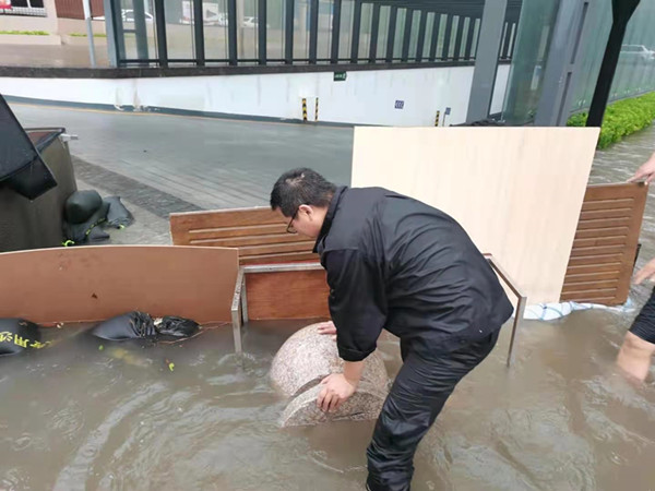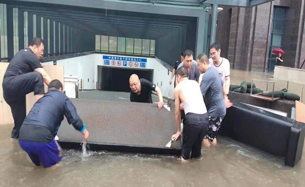負(fù)一層這時(shí)候水已經(jīng)淹到了膝蓋處;由于配電室被淹導(dǎo)致停電,李艷***大隊(duì)長(zhǎng)馬上摸黑帶領(lǐng)隊(duì)員裝沙袋,找擋板,蹚著近腰高的深水堵截洪水。背沙袋、拖沙袋、拉沙袋,隊(duì)員們一路小跑,不管用什么辦法,爭(zhēng)分奪秒,搶險(xiǎn)******,戰(zhàn)勝洪水。