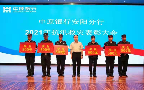 2021年9月23日,中原銀行安陽分行在三樓報(bào)告廳隆重召開******表彰大會(huì),分行領(lǐng)導(dǎo)班子、各支行行長(zhǎng)和部門經(jīng)理全部參加,會(huì)議由分行紀(jì)委書記牛書記主持,表彰在“7.22”防汛救災(zāi)中表現(xiàn)突出的******集體和個(gè)人,大會(huì)表揚(yáng)了安陽市洹河保安服務(wù)公司駐分行人防四大隊(duì)保安中隊(duì)長(zhǎng)田衛(wèi)順、郭海波等6位******個(gè)人,并每人發(fā)放獎(jiǎng)金500元。表揚(yáng)他們?cè)诖鬄?zāi)面前“困難時(shí)刻拉得出,危急時(shí)刻頂?shù)蒙?,關(guān)鍵時(shí)刻靠得住,決戰(zhàn)時(shí)刻打得贏”的防汛救災(zāi)精神。