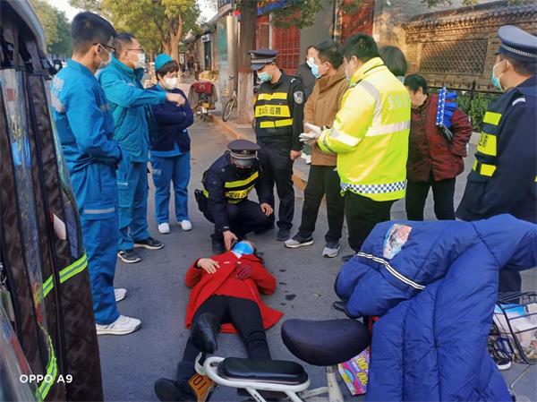 早上7點50分許,巡防隊員王***清、梁子力,完成學(xué)校護校崗安保任務(wù)后,在返回單位途中,發(fā)現(xiàn)文峰北路與三道街交叉口車輛行駛極其緩慢,造成道路擁堵。王***清立即下車查看,原來是一輛轎車與一輛電動車發(fā)生碰撞,導(dǎo)致電動車側(cè)翻倒地,一名約70歲的老人摔倒在地,見此情形,執(zhí)勤隊員連忙上前詢問查看,發(fā)現(xiàn)該老人表情痛苦,外觀有輕微傷。