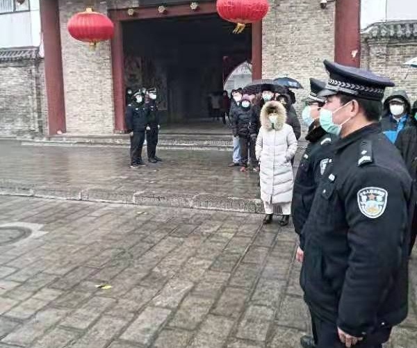 當(dāng)日清晨6時(shí)30分許,巡防隊(duì)隊(duì)長(zhǎng)李濤濤整合了留守備勤的巡防隊(duì)伍,按照要求指派隊(duì)員到各個(gè)疫情防控點(diǎn)開(kāi)展工作,自己帶領(lǐng)了一支隊(duì)伍到倉(cāng)巷街核酸檢測(cè)點(diǎn)進(jìn)行維穩(wěn)。8時(shí)許,天空開(kāi)始飄起了鵝毛大雪,全體隊(duì)員們冒著風(fēng)雪,在現(xiàn)場(chǎng)維持著秩序。盡管大雪飄打在身上,淋濕了衣裳,隊(duì)員們依舊堅(jiān)定不移的按照上級(jí)單位要求,堅(jiān)守在自己的崗位上。