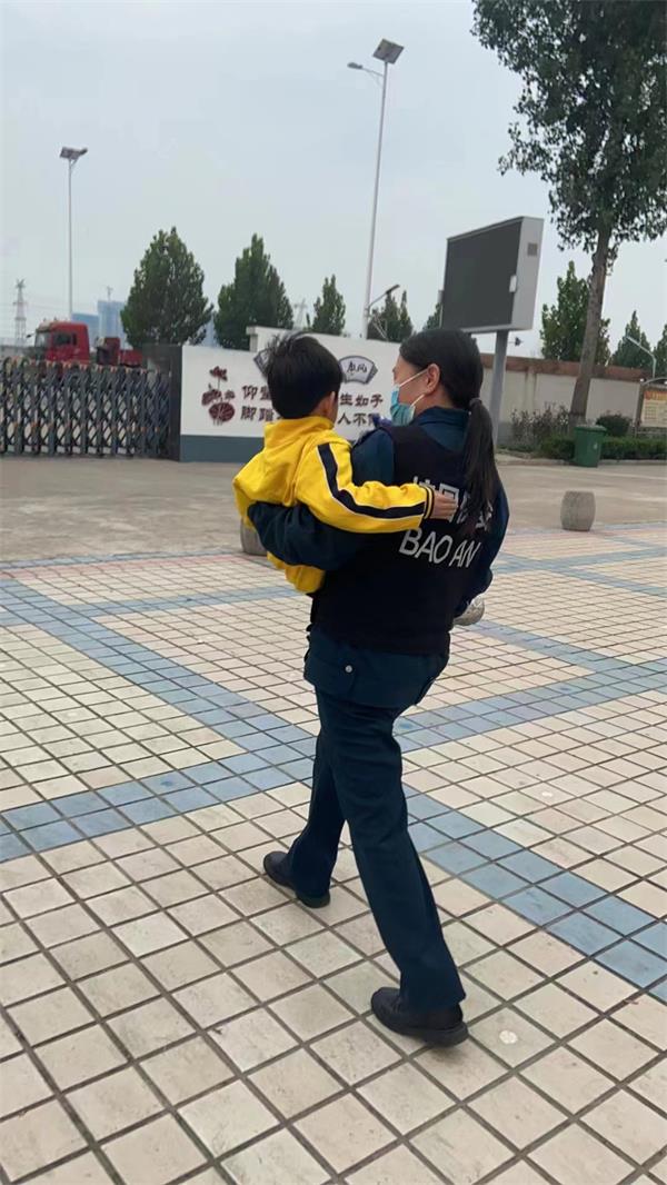10月26日上午10:40分,外國語小學(xué)一名學(xué)生在學(xué)校不慎把腳扭傷,請假后自己出來走到教學(xué)樓大廳臺階處時下臺階有點吃力,人防四大隊駐安陽外國語小學(xué)保安李丹看到后迅速上前,征得學(xué)生同意后抱起學(xué)生,送到學(xué)校門口等候家長來接,當(dāng)時抱起學(xué)生時被學(xué)校老師看到,拍下照片發(fā)到外國語小學(xué)教師群里,得到了學(xué)校全體老師以及校領(lǐng)導(dǎo)的好評。
