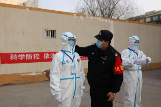 1月23日(臘月二十九),臨近春節(jié),輔警中隊忙著執(zhí)勤,保障春節(jié)期間的社會平安。李鑫和隊員白天站崗,晚上帶隊巡邏,已經處于連軸轉的狀態(tài)。就在此時,更艱巨的任務已經在等待他們。1月24日(除夕)夜,華強城小區(qū)發(fā)現(xiàn)疫情,分局指令輔警中隊迅速趕往華強城小區(qū),執(zhí)行警戒任務。李鑫二話不說,帶領當值特保(輔警)隊員,趕到執(zhí)勤地點。個人防護用品不夠,李鑫讓隊員先用上,自己開車到家,把愛人為自己家庭準備的口罩和酒精帶到執(zhí)勤點,緩解了防護用品缺乏的情況。待到分局防護物品送到前,現(xiàn)場所有執(zhí)勤隊員已經按照要求做好防護,執(zhí)行勤務。分局楊局長夸獎輔警中隊“到位迅速,防護嚴密,心中有警”。