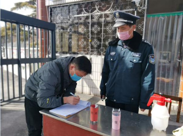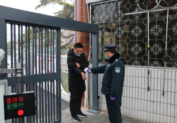 圖為對(duì)進(jìn)入人員測(cè)量體溫,進(jìn)行信息登記。