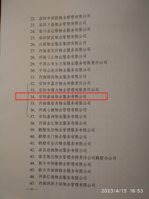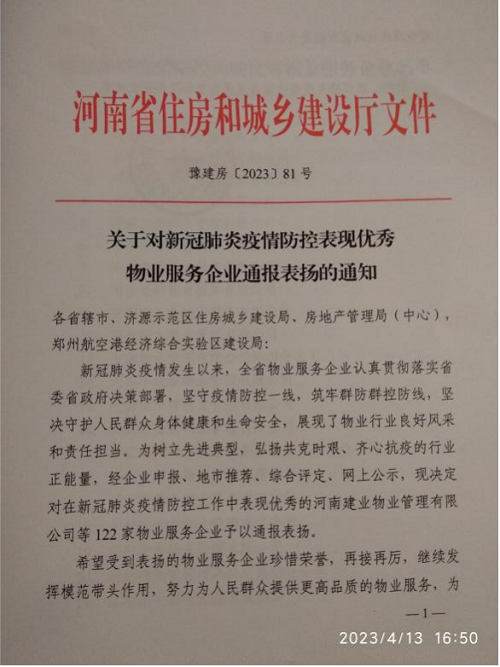 4月8日,河南省住房和城鄉(xiāng)建設(shè)廳通報(bào)表?yè)P(yáng)了全省新冠肺炎疫情防控工作表現(xiàn)******的122家物業(yè)服務(wù)企業(yè),安陽(yáng)鼎誠(chéng)物業(yè)服務(wù)有限公司榜上有名。