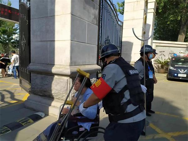期間,一名開(kāi)高的考生,因腿受傷不能行走,家長(zhǎng)用車(chē)子送至一中大門(mén)口。保安班長(zhǎng)王鳳銀見(jiàn)狀后,主動(dòng)跟家長(zhǎng)和學(xué)校溝通后,帶領(lǐng)隊(duì)員接過(guò)了護(hù)送該考生進(jìn)入考場(chǎng)的任務(wù)。他們用一中的輪椅,把考生送至考場(chǎng)外,聯(lián)系老師送至考場(chǎng)內(nèi),考試結(jié)束后,再把考生接出送至大門(mén)口。