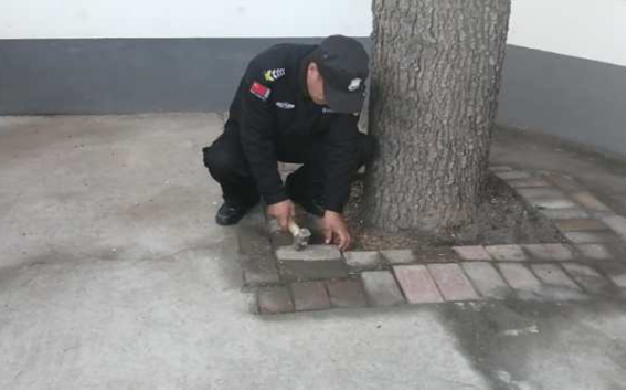 說干就干,保安隊員下班后,每天晚走一會兒,又是刨樹根,又是推沙石、找磚塊,用了2天時間鋪磚500余塊,整修地面30多平米,圓滿完成任務(wù)。