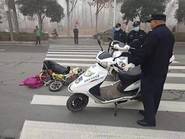 11月24日早上,人防一大隊駐高新區(qū)政法辦巡防隊隊員在轄區(qū)巡邏,救助一名交通事故受傷群眾。