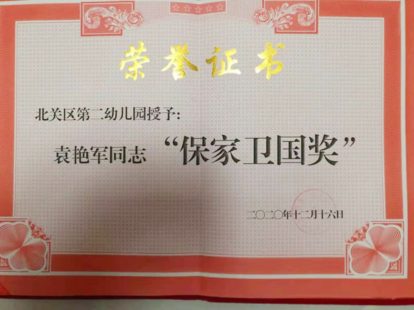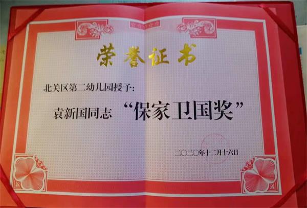 在北關區(qū)第二幼兒園園慶暨2020年表彰會上,兩名同志被園方授予“保家衛(wèi)國”榮譽稱號。二人表示,在新的一年里,一定不辜負領導的厚愛與期望,不忘宗旨使命,認真履行職責,為構建平安幼兒園和抗擊疫情貢獻自己的力量。